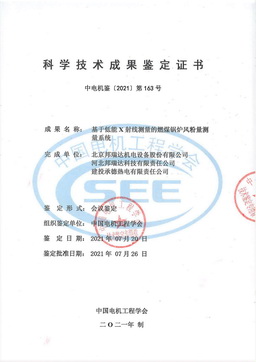 2021年7月20日,中國電機工程學會組織召開了該產(chǎn)品的技術(shù)鑒定會,鑒定委員會認為:項目成果攻克了燃煤鍋爐風粉量在線精準測量的重大難題,為煤粉燃燒鍋爐均衡燃燒控制、低負荷穩(wěn)定燃燒和變負荷靈活運行提供了重要技術(shù)支撐,具有良好的應(yīng)用前景和社會經(jīng)濟效益。整體技術(shù)居國際領(lǐng)先水平。